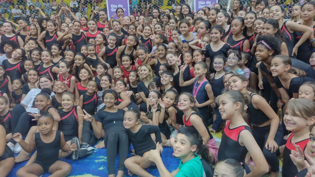 O Ginásio de Esportes de Taboão da Serra foi palco, nesta terça-feira (27), de um evento memorável para a cidade: o Dia do Desafio, promovido pelo Sesc em parceria com a Prefeitura Municipal, reuniu centenas de crianças, adolescentes, familiares e autoridades em uma noite dedicada à ginástica olímpica e à promoção do esporte. O grande destaque ficou por conta da presença da medalhista olímpica Flávia Saraiva, que, com sua simpatia e carisma, emocionou o público ao compartilhar sua história de superação e paixão pelo esporte.